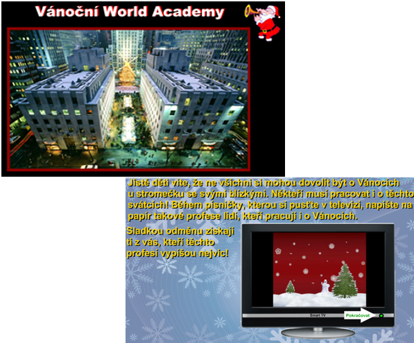 Hra je obohacena o audiovizuální prvky. Snadno tak vytvoří při Vaší výukové hodině tu správnou vánoční atmosféru!